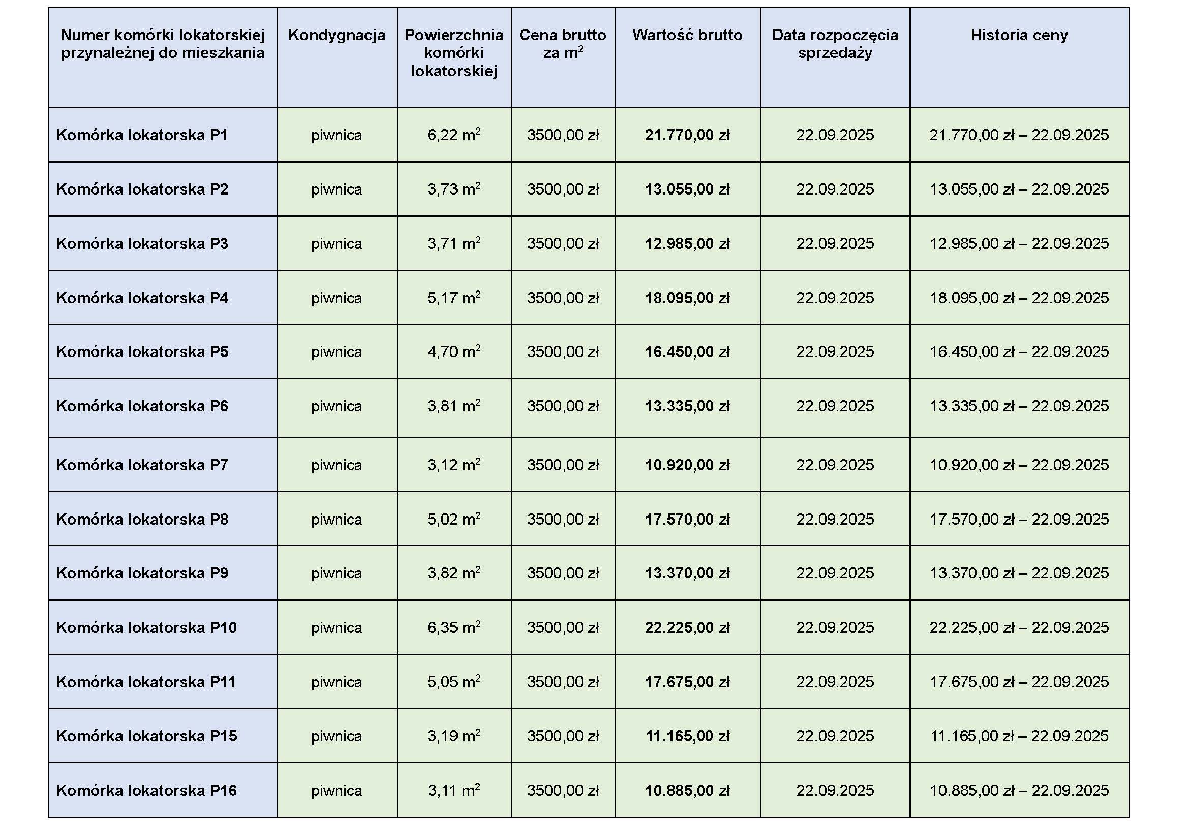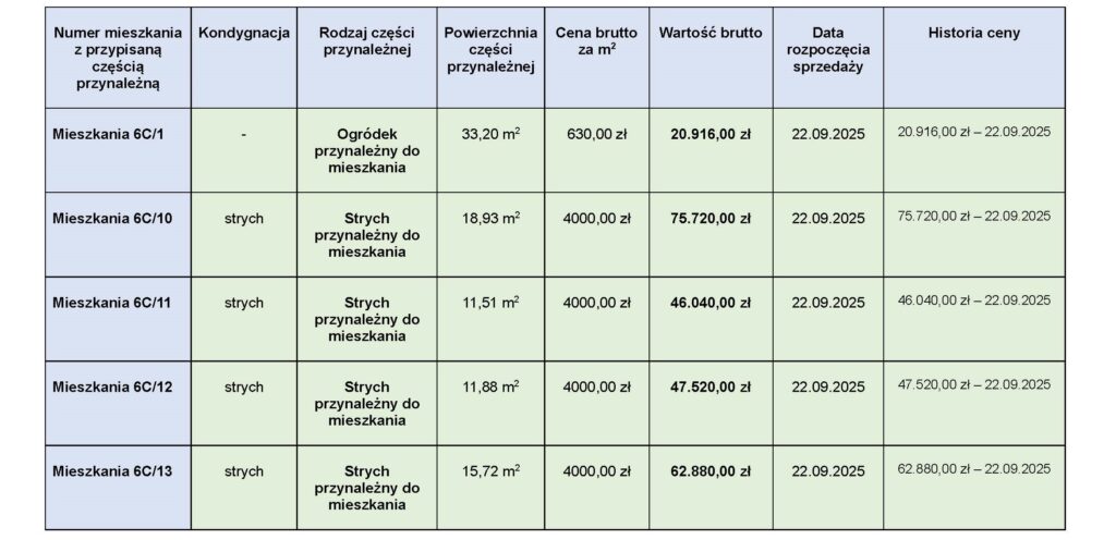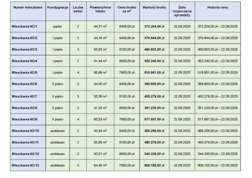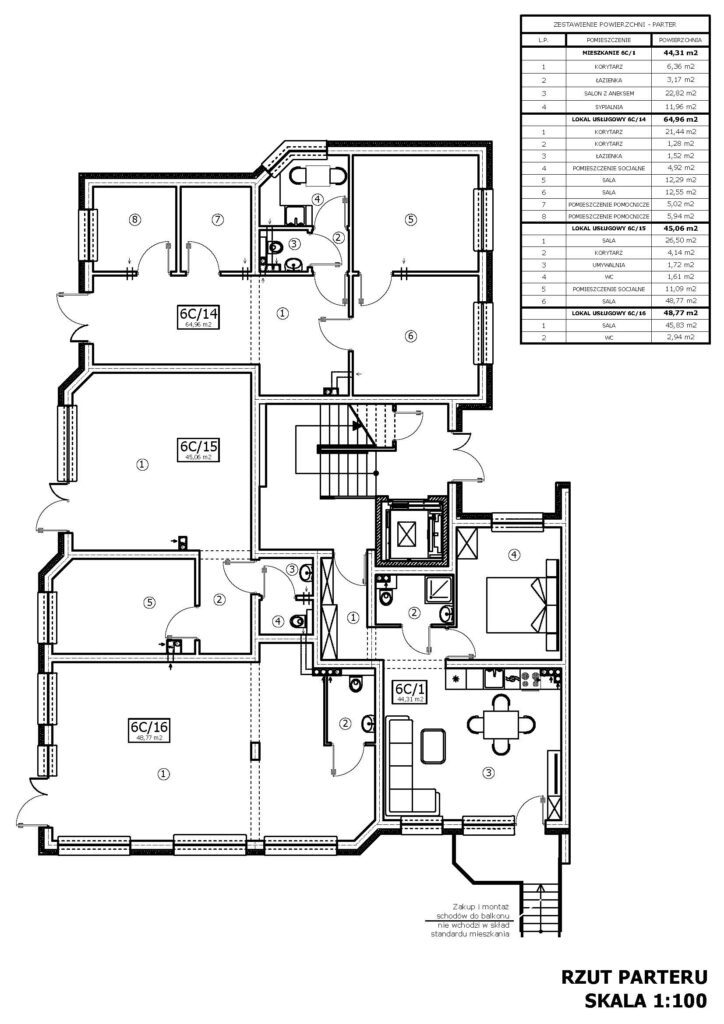 Lokale Zarezerwowane: 6C/3, 6C/4, 6C/5, 6C/6, 6C/7, 6C/8, 6C/11, 6C/14, 6C/15, 6C/16